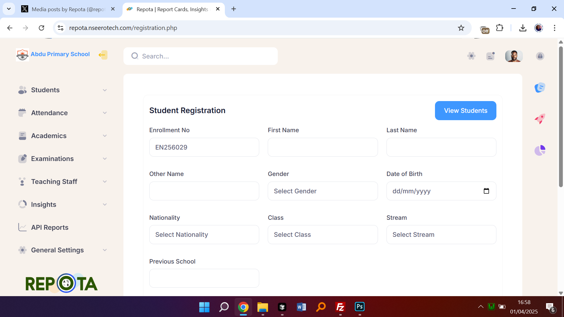 REPOTA is an innovative digital platform designed to automate report card generation, track student performance, and monitor attendance with precision and ease. Built for modern schools, REPOTA eliminates manual errors, saves time, and provides real-time insights into student progress.